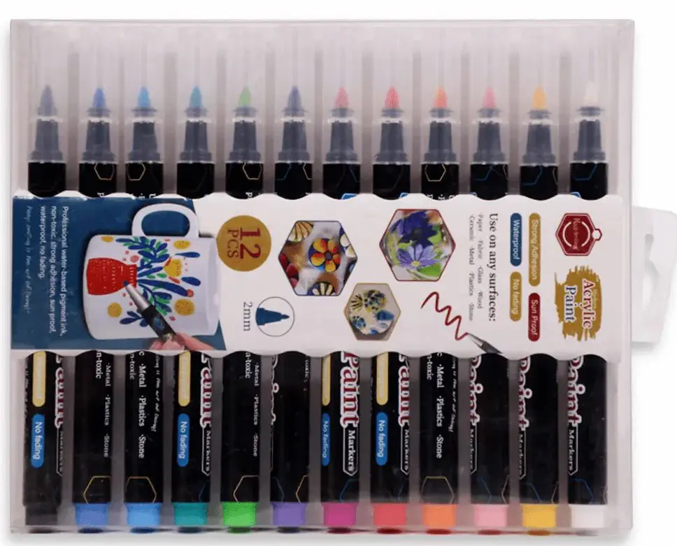 • 12 Acrylic Colour Paint Markers Set