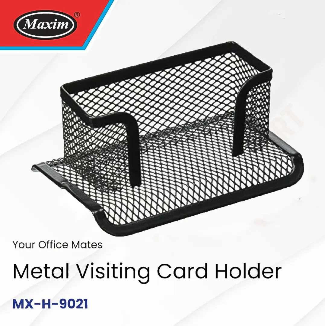 Maxim MX-H-9021 Mesh Steel Business Card Holder features a large capacity with an easy-access design. Made of durable mesh steel, it keeps your business cards organized and professional. Available in Black colour.
