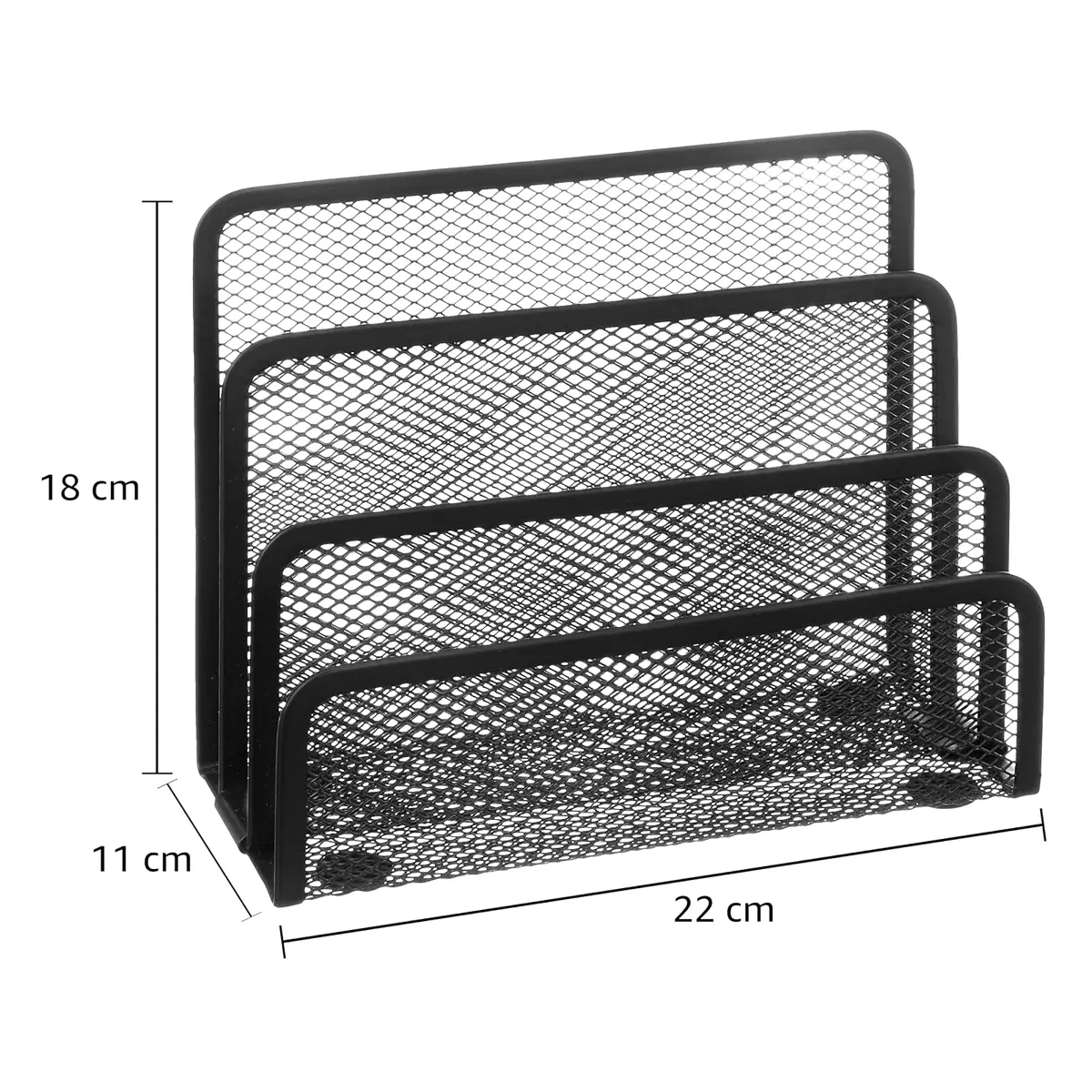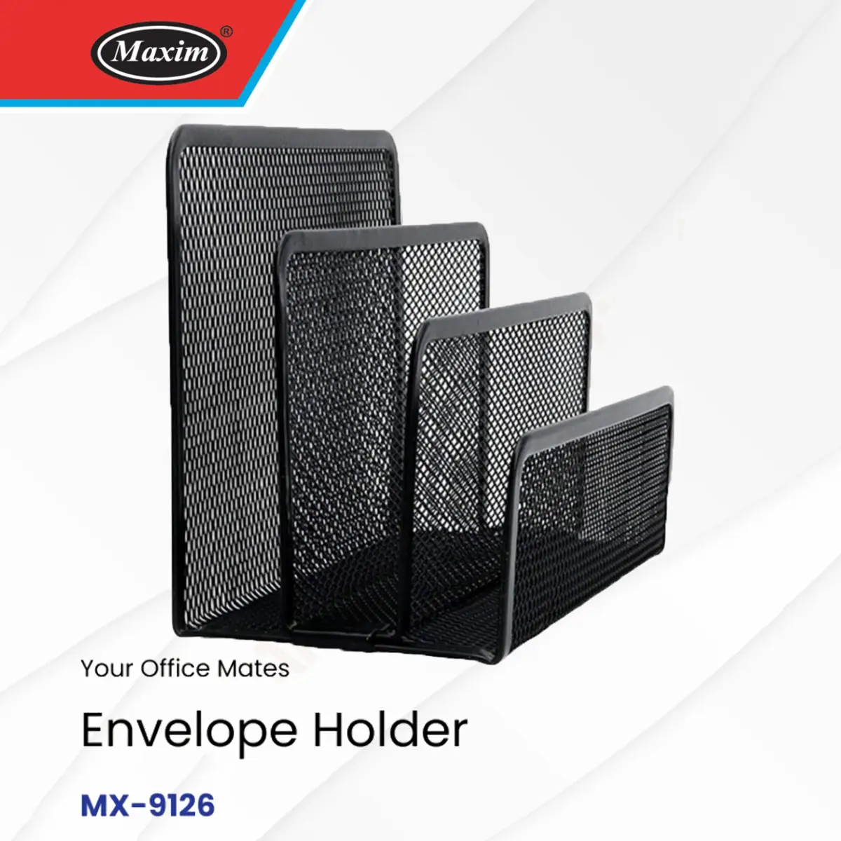 Maxim MX-9126 Mesh Steel Envelope Holder is a sleek and practical desk accessory designed to keep your letters, bills, and envelopes neatly organized. Featuring a 3-tier stepped design, it allows easy access and visibility of your documents. Made of durable mesh steel, it offers strength and a modern look, making it perfect for offices, schools, and home workspaces. Available in Black colour.