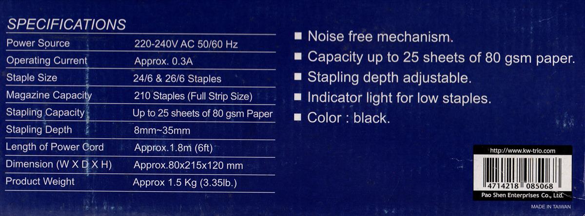 | 05990 | 25 sheets | 8-35 mm | 24/6 | 150 pcs | AC plug | 220V